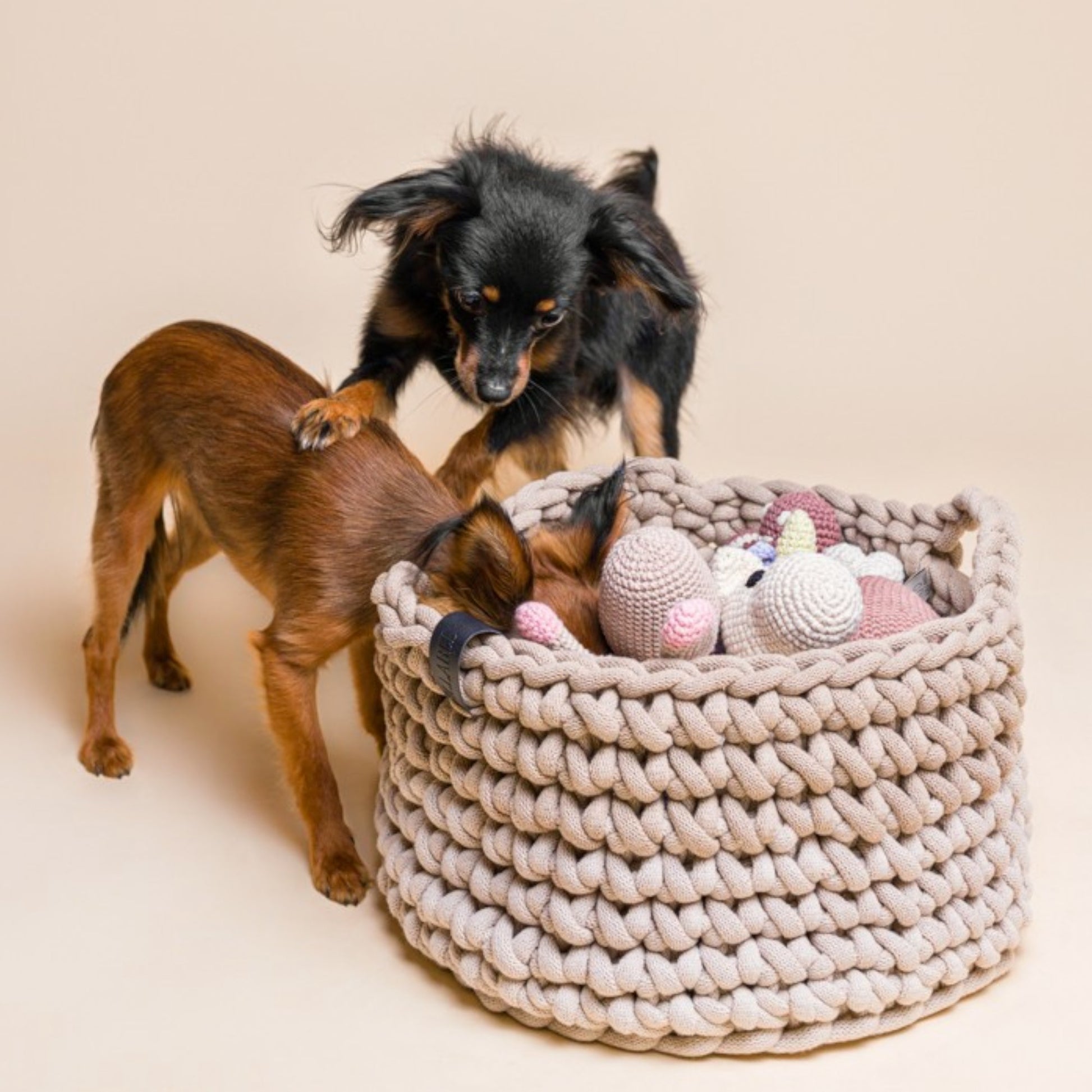 This sturdy and beautiful toy basket, available in cream beige or blue, is a fashionable home accessory that can hold all of your pet's treasures.